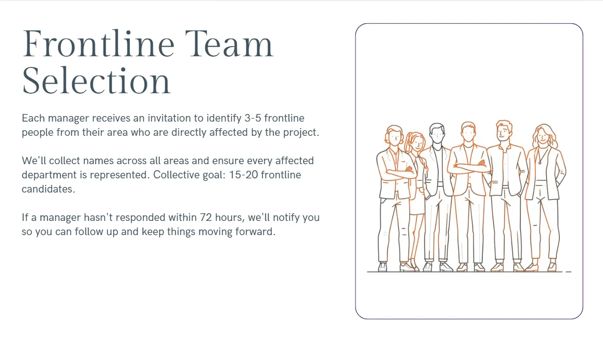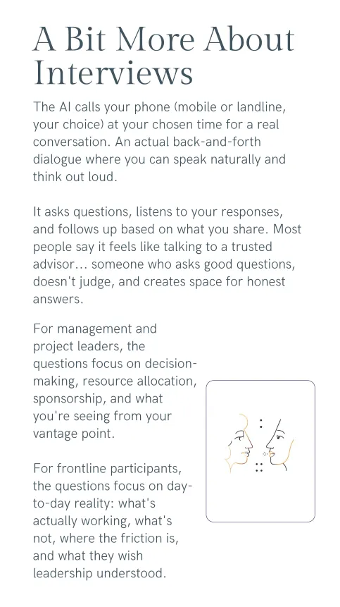 Which human dynamics patterns are active in your organization: where leadership is misaligned, where resources are fiction, where resistance is hiding beneath compliance. Not generic best practices... specific patterns we identified in your interviews.
