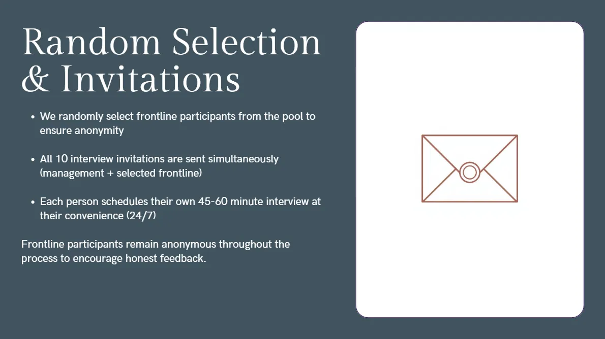 Where your leadership team and your frontline see things the same way, and where they don't. The gaps reveal where communication is breaking down, where expectations are misaligned, and where problems are brewing.